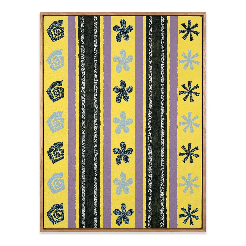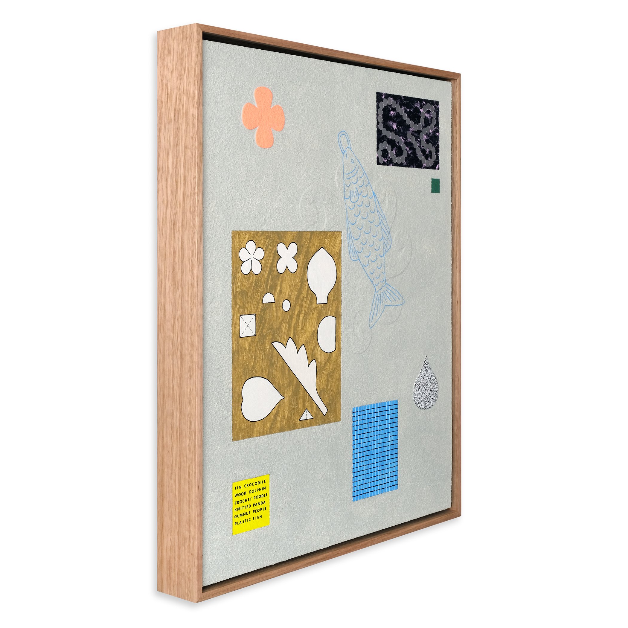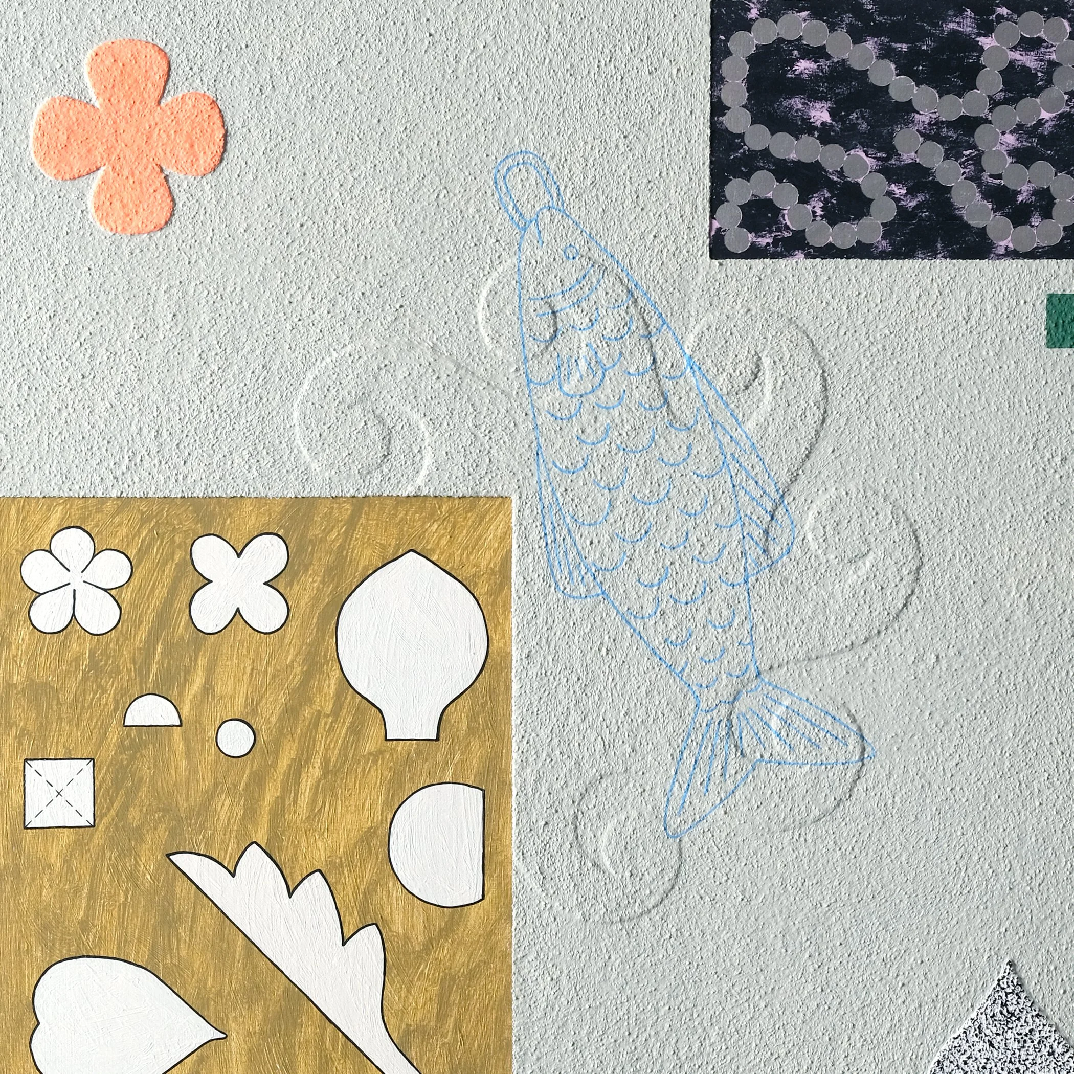 In the Studio, 2025, Japanese acrylic gouache, sand, letraset on wood panel (detail)